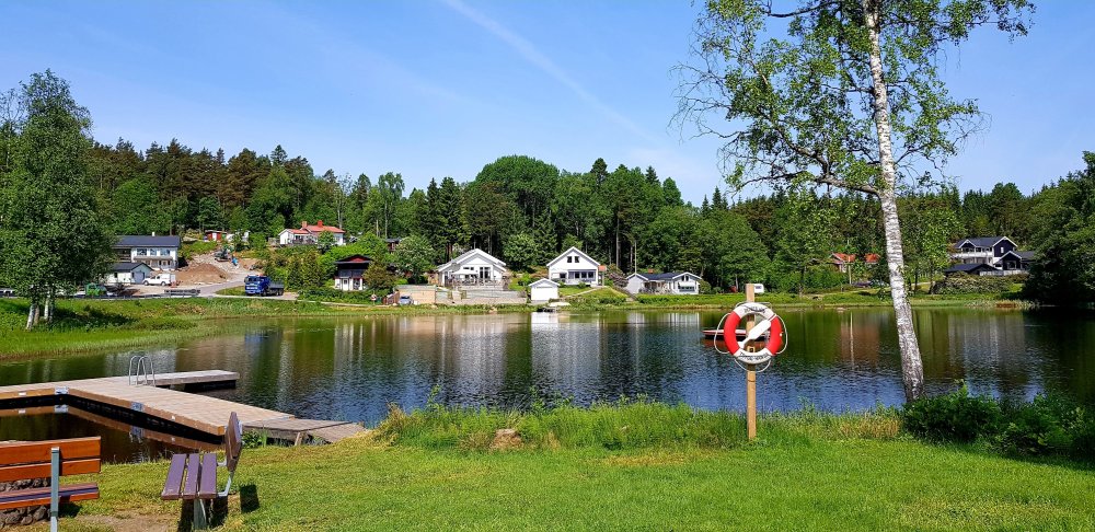 Der Ruhetag in Göteborg hat wirklich gut getan, ich habe den Eindruck, mein Rad fliegt nur so über den Asphalt. Das könnte aber auch an dem frisch aufgefüllten Luftdruck von meinen Reifen liegen. Nun geht es weiter, ohne Karte … Dafür lasse ich heute mein aus an Netz heruntergeladen Track auf dem Garmin gegen Komoot antreten. Den Weg aus Göteborg überlasse ich dem Garmin, ein wenig Schwierigkeiten habe ich, den Eingang zur Brücke zu finden, die aus der Stadt hinaus führt, aber auch das gelingt irgendwann, nachdem ich mich durch mehrere Baustellen gekämpft habe. Der Weg sah auf der Karte ganz idyllisch aus, entlang eines Flusses eben. Dass zwischem dem Fluss und meinem Weg neben der Strasse noch eine sechsspurige Autobahn liegt, das habe ich übersehen. So zieht es sich ein wenig. In Kärra sind sich Komoot und mein Garmin nicht einig und führen in unterschiedliche Richtungen. Ich entscheide mich fur Komoot, was bedeutet, dass ich mit Knopf im Ohr fahren muss, da die Befehle von meinem Handy im Straßenverkehr nicht zu hören sind. Ein wenig lästig. Aber der Weg entlang eines Flusses ohne Straße dazwischen ist toll und ich glaube, die richtige Entscheidung getroffen zu haben, bis ich auf eine Baustelle treffe. Das Tor steht offen und ich fahre munter weiter, stelle aber direkt fest, dass hier nix aber auch wirklich nix mehr an eine Straße erinnert. Ein Baggerfahrer schaut mich fragend an, stoppt seinen Motor und steigt aus. “You are not allowed to drive here!“ “But my route says that I’m correct. Was here a street before the construction?“ “Yes, not we are building here since 2016. Come with me, I will help you!“ Er hat Mitleid mit mir und führt mich doch wirklich mit meinem Rad über die Baustelle, das sind vielleicht 200 Meter, aber es ist streng verboten. Und zudem ist noch der “Big Boss“ heute zu Besuch. Ich bin mehr als dankbar, den Weg nicht zurück zu müssen und folge einem Schotterweg, zwar auch noch Baustelle, aber befahrbar. Als ich endlich wieder eine wirkliche echte Straße erreiche, winkt mir noch ein anderer Baggerfahrer zu. Ich sag es doch, diese Schweden sind schon toll und wäre ich nicht bereits ein Fan, ich wäre es heute geworden. Dabei frage ich mich auch, wie es mir in Deutschland gegangen wäre, schwer zu beantworten, aber ich halte es nicht für ausgeschlossen, dass man mich mit großer Wahrscheinlichkeit zurück geschickt hätte.