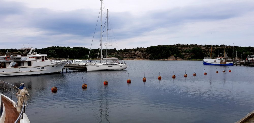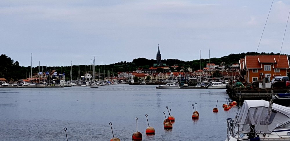 Wieder sind wir um neun Uhr abfahrbereit, der nächste Supermarkt wird aufgesucht, hier gibt es keinen Kaffee, aber Tilly beschließt, dass sie noch eine Karte an ihre 93-jährige Mutter schreiben möchte und findet zielstrebig das nächste Cafe. So dauert es wieder länger, bis wir endlich ins Fahren kommen, aber das läuft ganz hervorragend. Heute muss ich meine Beine nicht anfeuern, denn sie flüstern mit leise zu “Wir machen das! Wir machen das! Wir machen das!“. Und das erste Mal machen mir die Anstiege sogar Spaß. Ob es an dem Rückenwind, an den weniger steilen Hügeln oder an den heute kühleren Temperaturen liegt, kann ich nicht sagen. Aber wir rauschen nur so dahin. An einer Bushaltestelle machen wir Mittagspause. Wir treffen auf zwei englische Radler, die sind gestern in Oslo angekommen und wollen nach Hamburg, in 10 Tagen! Mit mehr als 100 Kilometern am Tag. Aber was sie nicht auf dem Zettel hatten, sind die Steigungen, jetzt schauen sie mal wie weit sie kommen. Mein Track hat auch heute eine andere Streckenführung, als Tillys Buch – offenbar auch eine kürzere, den bereits nach 50 Kilometern und nicht wie erwartet 60, kommen wir am Campingplatz vor Strömstad an. Tilly möchte heute eine kleine Hütte mieten, die sind nur wenig teurer als ein Zelt, mir ist beides recht. Kaum haben wir bezahlt, öffnet der Himmel seine Schleusen. Den Nachmittag sind wir dann faul, ich nutze die Möglichkeit, zu waschen, ziehe mich aber auch bewusst zurück, ich merke, dass ich Zeit zum Alleinsein brauche, mir die stillen Momente fehlen und ich gern auch wieder meinem eigenem Tagesrhythmus folgen möchte.