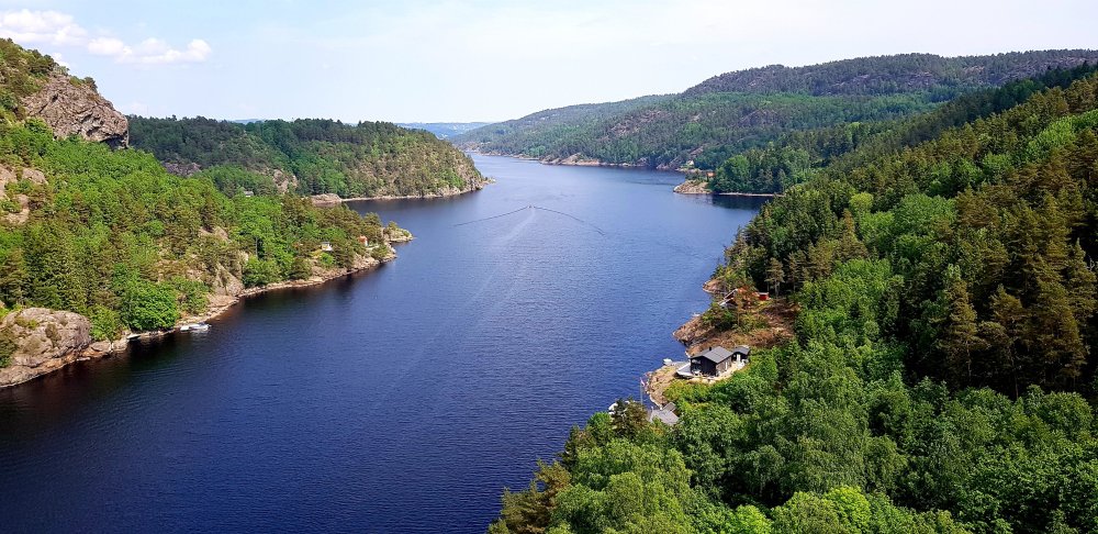 Am Vorabend fiel es mir schwer einzuschlafen. Mir ist das mit Tilly in der engen Hütte zu nah, zudem fängt sie noch an zu schnarchen. Nach mehr als zwei Stunden Hörbuch über Kopfhörer fängt mich der Schlaf schließlich ein. Morgens gelingt es mir dann auch nur mäßig meine Ungeduld nicht zu zeigen, bis Tilly fertig gekramt und abfahrbereit ist. Heute stehen immerhin über 70 Kilometer mit einigen Steigungen an und es ist wieder spät, als wir endlich losradeln und vom ersten Supermarkt loskommen. Der erste Stopp erfolgt kurz darauf am Gut Blomsberg, wo es allerlei zu sehen gibt. Wir gehen zu einem Schiff, das aus Steinen errichtet wurde, warum, weiß man nicht, aber es gibt verschiedene Theorien dazu. nach einigen aufeinanderfolgenden Anstiegen und Abfahrten ist von Tilly nichts mehr zu sehen. Ich warte … und warte … und warte. Gerade als ich mir anfange Sorgen zu machen und ich den Weg zurückfahre, taucht Tilly auf, sie hatte ein Schwätzchen mit einer Radfahrerin gehalten. In Svinesund dann Mittags- und Einkaufspause, wo die letzten schwedischen Kronen verjubelt werden wollen. Ich bin schon lange abfahrbereit, aber es dauert wieder ein wenig, bis Tilly fertig gekramt hat. Und dann folgt die Grenze nach Norwegen. Ich bin in ein paar Meter vor Tilly, diesen Augenblick möchte ich gern allein für mich haben. Es ist immer ein schönes, gar schon erhabenes Gefühl, eine neue Grenze erreicht zu haben. Und Norwegen bedeutet irgendwas für mich, was genau, muss ich selbst noch herausfinden, bisher ist es nur so eine Ahnung. Auf dieser Brücke gibt es auch Gelegenheit Fotos zu schießen. kurz nach der Grenze möchte Tilly dann die nächste Pause in einem Motel. Schon wieder Pause, wir hatten dich gerade erst Mittag. Doch ohne norwegische Kronen und ohne Geldautomat ist hier nichts auszurichten, mit Karte zahlt Tilly nicht, das kostet ja zusätzliche Gebühren, mindestens einen Franken. Es ist inwischen halb vier und es stehen erst 40 Kilometer auf dem Tacho. Tilly würde den Tag gern bald beenden, ich möchte noch weiter bis Fredrikstad, also beschließen wir uns zu trennen und ich sage Tilly, wo der nächste Campingplatz zu finden wäre. Für mich geht es allein weiter, über eine Schotterpiste mit ein paar Höhenmetern, die meine Kräfte und meine Beine fordern. Dafür kommt man an einer wunderschönen Bucht (oder heißt es jetzt Fjord?) bei Hoysand raus und es ist erstaunlich, wie sehr sich die Landschaft quasi mit Landesgrenze verändert hat. Als ich dann endlich wieder eine normale Straße erreiche, höre ich kurz darauf ein bekanntes Klacken hinter mir, Tillys Gangschaltung. Sie hat den kürzeren und einfacheren Weg entlang der Bundesstraße genommen. Bis Fredrikstad sind es nun noch 15 Kilometer, und sie sagt, das schaffe sie wohl noch. Diese 15 Kilometer führen aber wieder entlang eines zwar autofreien aber schwer befahren Weges, bei dem man stellenweise schieben muss. Tilly braucht Hilfe, ihr Rad ist so viel schwerer beladen als meins. Sie hat unter anderem drei Schlafsäcke dabei und ein komplettes massives Kochset, was allein so viel wiegt, wie meine gesamte Zelt- und Kochausrüstung. Zum Glück liegt der Zeltplatz schon früh am Ortseingang. Heute bin ich kaputt, es ist schon spät und ich freue mich wie immer über eine warme Dusche und genieße das Abendessen.