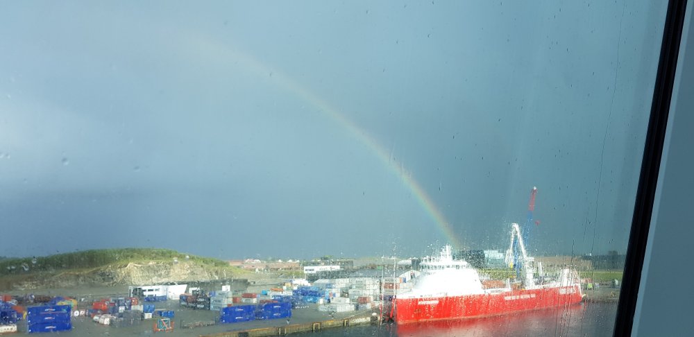 Heute hab ich es nicht mehr weit bis Stavanger. Ich warte noch den stärksten Regen ab, bevor ich mich auf den Weg mache. Als ich auschecke, wird mein Rad von einem deutschen Wohnmobil-Touristen fotografiert. Der begutachtet dann auch direkt meine Regenkleidung und bietet mir an, mich nach Stavanger mitzunehmen. Doch die letzten Kilometer möchte ich mir heute trotz schlechten Wetters nicht nehmen lassen. Ich fahre heute wieder auf der Route 44, die inzwischen wesentlich verkehrsreicher ist. Und leider endet irgendwann auch der Radstreifen. Sich von LKWs überholen zu lassen ist kein so großes Fahrvergnügen, aber heute auf Schotterstraßen fahren, mag ich auch nicht. In Bryne gibt es ein Einkaufszentrum und ich nutze die Gelegenheit um ein paar norwegische Spezialitäten für die Familie zu Hause zu kaufen und um mich wieder trocken zu legen. Für heute habe ich wieder eine Unterkunft über warmshowers und noch massenhaft Zeit. Mit google maps und komoot recherchiere ich dann noch den schönsten Weg nach Stavanger. Entlang eines Sees ohne Autoverkehr kann ich nun nochmal besser meine Gedanken ziehen und den ersten Teil der Tour Revue passieren lassen. Und ja, ich finde Stolz ist vollkommen angebracht. Das war jetzt immerhin in der letzten Woche und bewundere in den letzten Tagen das anspruchsvollste Stück der bisherigen Strecke. Witzigerweise bekomme ich genau jetzt eine Nachricht von Tilly, die wissen möchte, wo ich bin. Sie hatte von der alten Poststraße wohl genug und ist ab Kristiansand mit dem Schiff nach Bergen gefahren. Nun ist sie weiter auf dem Weg in Richtung Nordkap. Ich genieße derweil sehr langsam meine letzten Kilometer trotz Regen und bin dann auch schon bald in Stavager. In der Touri-Info kann ich noch meine Überfahrt für die Fähre buchen, bevor mein letzter und überaus netter Abend in Norwegen anbricht. Neben mir hat sich bei meiner Gastgeberin noch ein Pärchen aus Südkorea einquartiert, das schon seit 2 1/2 Jahren mit dem Rad unterwegs ist und morgen die selbe Fähre nehmen wird.