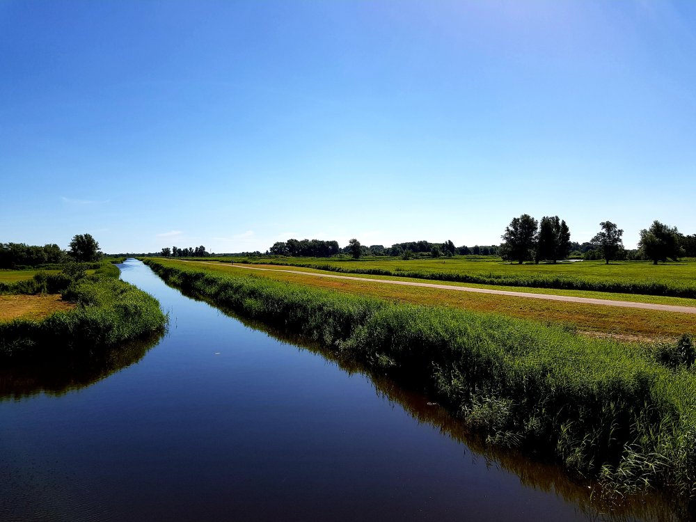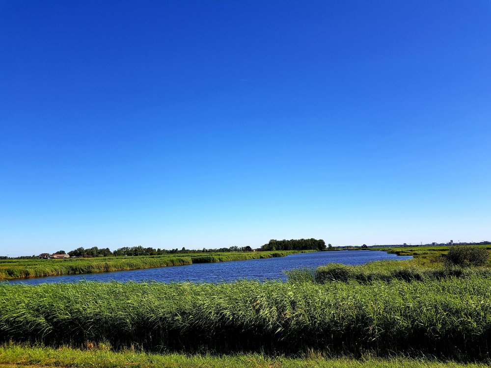 Als ich morgens noch im Bett meine heutige Verbindung überprüfe, muss ich leider feststellen, dass mein Zug von Hannover bis Amsterdam ausfällt. Bei der Hotline rät man mir, mich direkt vor Ort ans Reisezentrum zu wenden. Vorher suche ich mir noch eine Verbindung raus, die früher geht und ein paar mehr Umstiege beinhaltet, dafür wäre ich aber fast zur selben Ankunftszeit in Amsterdam. Nun heißt es leider auch früher aufbrechen als ursprünglich geplant, adieu gemütliches Frühstück. Die Dame am Schalter muss erst mal alles nachvollziehen, was ich schon längst recherchiert habe, aber es klappt gerade noch so mit dem Zug und ein Einkauf beim Bäcker ist auch noch drin. Die Fahrt läuft dann trotz der Umstiege besser als erwartet, nur den letzten Anschlusszug verpasse ich, was nicht schlimm ist, da bereits 10 Minuten später ein anderer Zug nach Amsterdam geht. Und die Niederlande ziehen alle Register, um mich zu beeindrucken. Ich drehe eine kleine Runde durch die Stadt bei bestem Wetter – ganz schön viel los hier und dann auch so viele Radler. Alle ohne Helm. Auch heute hab ich eine Unterkunft über das warmshowers-Netzwerk gefunden, muss dazu aber gute 10 Kilometer aus der Stadt rausfahren. Es kommt mir noch so unwirklich vor, eben war ich noch in Braunschweig, jetzt bin ich in Holland, andere Landschaft, andere Häuser, andere Sprache. Gegen halb sieben komme ich an und werde mir selbstgemachtem Pie beköstigt, bevor mir Mariekje mein heutiges Domizil zeigt, ein Gartenhaus mit Wasserblick, eigener Dusche und WC und wunderschön hergerichtet. Es könnte schlechter gehen.