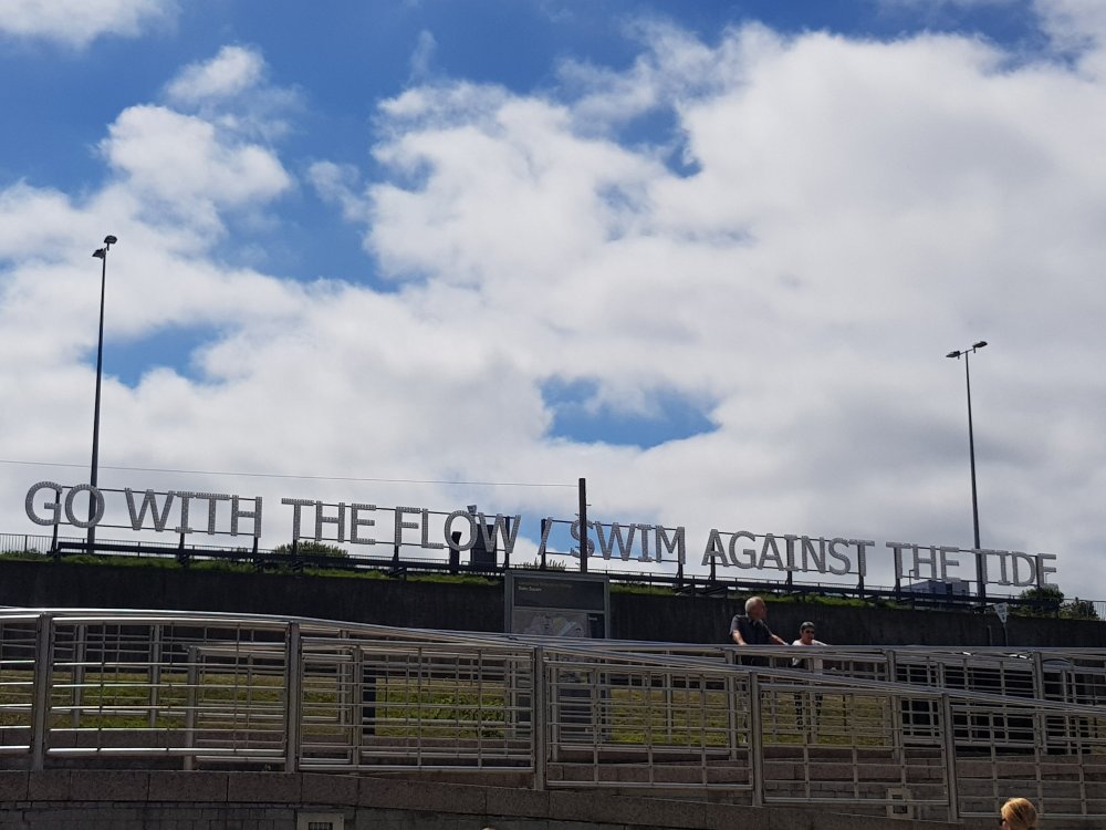 Obwohl ich nicht den Eindruck habe, tief und fest geschlafen zu haben, fühle ich mich fit und ausgeruht. Kein Vergleich zur letzten Fährüberfahrt von Stavanger. Auf der Fähre kann ich sogar noch meine übrig gebliebenen schwedischen und norwegischen Kronen in britische Pfund umtauschen, bin also bestens für den Tag gewappnet. Während mit mir noch einige andere Radler darauf warten, von der Fähre gelassen zu werden, versorgt mich eine britischte Radlerin mit allerlei Tipps für meine geplante Strecke. Ich entscheide mich zunächst für einen Besuch von Newcastle, auch wenn die Stadt nicht direkt meinem Routenverlauf entspricht. Ein ganzes Pulk Radler ist auf der Strecke unterwegs, aber das verteilt sich dann in Newcastle. Ich genieße ein zweites Frühstück in der Stadt und erfahre aus der Heimat, dass England gestern bei der WM im Elfmeterschießen weiter gekommen ist, sind deshalb alle so freundlich zu mir? Obwohl ich selbst noch dabei bin, mich zu aklimatisieren, werde ich häufig und immer sehr nett gefragt, was ich denn vorhabe. Erstmal wieder zurück, um an die Küste und damit auf meine eigentliche Route zu kommen. Damit ich nicht den gleichen Weg nochmal fahren muss, fahre ich auf der anderen Seite des Flusses. Inzwischen ist auch das Wetter besser und ich mache aus meiner langen Hose eine kurze. Im ersten Supermarkt freue ich mich über die günstigen Preise und die Auswahl. Noch bin ich den norwegischen Standard gewöhnt. Der Weg an der Küste ist wunderschön, dazu gibt es Rückenwind und ich schüttel nur ungläubig den Kopf, da ich so viel Glück habe. Bei google maps hab ich mir vorher ein paar Campingplätze markiert und suche gegen 16 Uhr den nächsten auf. Doch dort erfahre ich, dass eine Übernachtung nur mit Caravan möglich ist, Zelten sei hier unüblich. Hmm, und nun? Im nächsten Ort gibt es zwei Bed & Breakfast, die aber beide schon ausgebucht sind, aber man schickt mich zum nächsten Pub. Dort bekomme ich ein sehr günstiges Zimmer mit Meeresblick! Dazu noch ein indisches Restaurant um die Ecke, und als ich im Bett liege, schallt live-Musik hoch. Excellent!