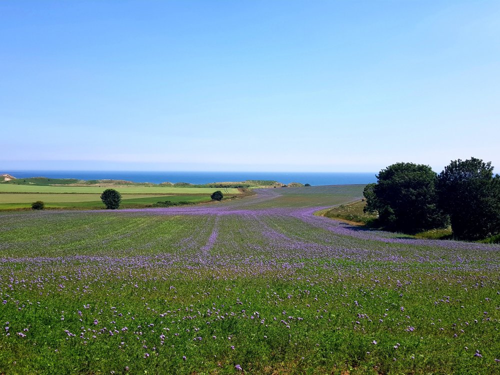 Es kommt mir wie Ewigkeiten vor, seitdem ich das letzte mal im Zelt übernachtet habe, dafür habe ich sehr fest geschlafen und mache mich ausgeruht auf eine neue Etappe. Der Weg führt erst über ein paar ruhige Straßen durch Felder, bevor es wieder ans Meer und damit auch leider wieder auf unwegsame Wege geht. Die entschädigen aber dann auch mit dem ein oder anderen Fotomotiv. Nur so richtig vorankommen will ich heute nicht und so dauert es viel länger, als von mir erwartet, bis ich endlich Berwick-upon-Tweed erreiche. Der Track mit dem Nordseeküstenradweg England auf meinem Garmin hört exakt an der Brücke auf. Nur irgendwie beginnt der Track mit dem Nordseeküstenradweg Schottland leider nicht auf der Brücke sondern irgendwo in Aberdeen. Na toll, das habe ich zu Hause nicht überprüft. Erstmal zur Touri-Info, das ist nie verkehrt. Mit dem wifi dort kann ich mir zumindest den Track in meine Komoot-App laden und bekomme die Information, dass auf den nächsten Kilometern kein Campingplatz zu finden ist. Also dann spontan was anderes suchen, erstmal auf nach Schottland. Da es nun auf asphaltieren ruhigen Straßen voran geht, purzeln die Kilometer nun endlich. Wieder gegen 16 Uhr halte ich die Augen nach einem möglichen Quartier auf und es dauert nicht lang, bis mitten im nirgendwo ein Hinweis auf Bed & Breakfast auftaucht, ich könnte heute durchaus noch weiter fahren, aber fragen kann man ja mal. Ich werde so nett empfangen, dass ich auch gleich bleibe und der Preis ist auch vollkommen im Rahmen. Eines der Dinge, die ich auf den bisherigen Touren gelernt habe, die Unterkünfte auf dem Land sind meist wesentlich schöner und dazu noch günstiger als in den Orten.