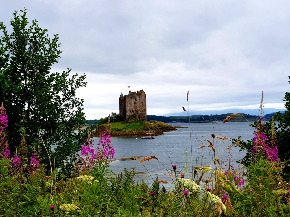 Gestern abend habe ich noch festgestellt, dass es statt der von mir erwarteten 50 Kilometer bis Oban leider doch 50 Meilen sind. Da ich inzwischen aber gut eingefahren bin und auch die Höhenmeter nicht mehr so stark spüre, sollte das gut zu schaffen sein, außerdem ist das Höhenprofil heute ohne größere Ausschläge. Morgens sieht es noch sehr bedeckt aus. Zunächst geht es darum, den Fähranleger zu finden, das ist aber schnell erledigt, doch die Fähre fährt erst in einer Dreiviertelstunde. Wir brauchen aber allein für mein Rad und die zahlreichen anderen, die sich inzwischen eingefunden haben mindestens eine Viertelstunde zum Verladen. Die Räder werden kunstvoll vom Fährmann am Dach vertaut, sowas habe ich auch noch nicht gesehen. Mir werden auch helfende Hände gereicht, damit ich mich nicht allein mit meinen 6 Taschen abmühen muss. Man fragt sich ja schon, ob man viel zu viel dabei hat, auf der anderen Seite brauche ich alles, was in meinen Taschen ist, nur die Reperaturutensilien sind noch nie zum Einsatz gekommen und das ist auch gut so. Auf der anderen Seite des Loch Linnhe angekommen, ist verfahren unmöglich und inzwischen hat es sich auch aufgeklärt und fährt sich einfach nur wunderschön. Wiedermal Schottland wie im Bilderbuch. Die Gipfel hängen zum Teil noch in den Wolken, die Sonne giltzert auf dem Wasser und ein paar Schafe weiden gemütlich auf sattgrünen Wiesen vor dieser traumhaften Kulisse. Nach ca. 10 Meilen steht die nächste Fährfahrt an, ich sehe die Fähre schon von weitem noch einlaufen und trete ordentlich in die Pedale, um es noch an Bord zu schaffen. Dort treffe ich dann einige Radler der ersten Fähre wieder, zwei haben wir jedoch abgehängt. Ich komme mit einem englischen Radler aus Newcastle ins Gespräch, der gerade einen Trip über Holland nach Berlin plant. Als wir die Fähre verlassen, lasse ich ihn weiterziehen. Hier auf der anderen Seite sind die Ausblicke weiterhin traumhaft, nur der Verkehr hat massenhaft zugenommen und so richtig Spaß macht das Radeln nicht, vorbeirauschende LKWs trüben das Fahrvergnügen. Aber man fährt immerhin auf einem separaten Streifen, so dass man sich zumindest sicher fühlt. Zum Glück wird der Verkehr weniger, als man eine Brücke passiert, mir kommt ein belgisches Radlerpärchen entgegen, die ich gleich nach der Qualität der weiteren Strecke ausquetschen kann. Sie versichern mir, dass es ruhiger werden wird und damit haben sie auch Recht. Man fährt ein Stück auf „The highway of sea kingdoms“ und entgegen des Namens handelt es sich um einen komplett autofreien Weg. Mitten im Wasser steht eine verfallene Burg. Das einzige, was ich heute vermisse, ist eine Einkaufsmöglichkeit. Der Laden, den ich passiert habe, hatte gerade geschlossen und ich bin froh, als endlich ein Gasthaus auftaucht. Es ist eh Zeit für eine Pause und inzwischen hat es auch angefangen zu nieseln. An der Tür steht bereits an ein Rad und drinnen sitzt Steve (der Radler von der Fähre), der ein Bier trinkt. Ich bestelle Kaffee und ein Thunfisch-Sandwich und wir tauschen uns über bereits absolvierte Radtouren aus, bevor Steve sich wieder auf den Weg macht, er muss nur noch 5 Meilen bis zum nächsten Campingplatz, ich mache mich kurz darauf ebenfalls auf den Weg, auch wenn es jetzt stark regnet. Bei mir sind es noch 17 Meilen. Die rattern aber nur so runter und sind nicht anstrengend. Doch als es nur noch drei Meilen bis zum Ziel Oban sind, fährt man nochmal durch grüne Hügel, die Steigungen sind nicht lang, aber steil und vor allem geht es nur rauf oder runter. Mir kommt es so vor, als wären es die längsten drei Meilen meines Lebens, und immer wenn man eine Steigung gemeister hat, taucht die nächste auf. Jetzt bin ich doch platt! Und auch genervt. Aber nach gefühlten Stunden finde ich mich schließlich endlich im Ortszentrum von Oban wieder. Hier ist es proppevoll, der Verkehr stapelt sich und ich schiebe mein Rad auf den letzten Metern zum Hostel lieber, als noch durch den engen Verkehr zu quetschen. Ich habe gerade noch zwei Nächte buchen können, danach ist das Hostel ausgebucht. Es ist eben Hochsaison. Aufgrund der vielen Menschen hier an der Westküste, den Schwierigkeiten freie Unterkünfte zu finden und meiner Müdigkeit, die sich immer mehr breit macht, beschließe ich, meine Schottlandradtour in Oban zu beenden. Außerdem hätte ich nie im Leben gedacht, dass man sich so an Landschaften satt sehen kann. Und Schottland ist wirklich überbordend. Ich verbringe einen ruhigen bummelnden Tag am nächsten Tag in Oban, fahre dann mit dem Zug nach Glasgow. Und diese Zugfahrt führt durch den Nationalpark “The Trossachs“ und ich bin zwar kein Experte, könnte mir aber vorstellen, dass es eine der schönsten Bahnstrecken ist. Nach einer Besichtigung von Glasgow am nächsten Tag geht es dann weiter nach Warrington, wo mich meine Nichte und mein Schwager in Empfang nehmen. Ich werde mit englischem Frühstück und indischem essen wieder aufgepäppelt und kann nur sagen: Bei der Familie ist es immer am Schönsten!
