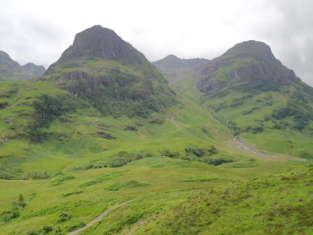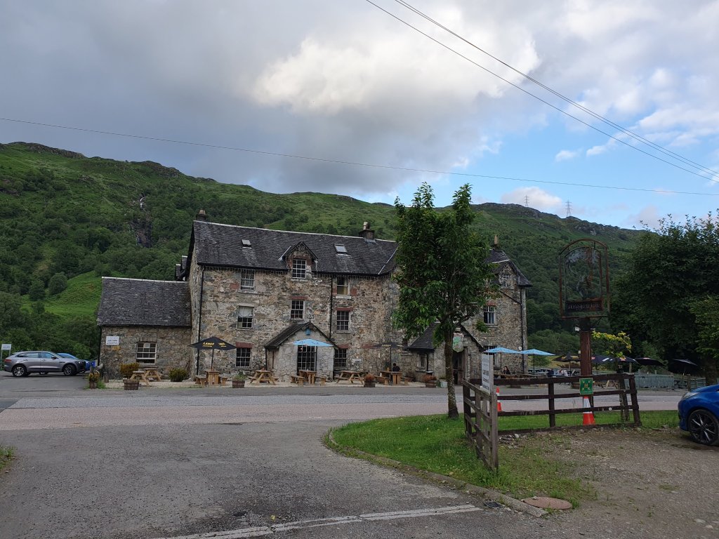 Das letzte Stück schließlich zeigt uns noch einen wunderschönen Ausblick und gibt einen Vorgeschmack auf die nächsten Tage, grüne Berge heben sich mächtig um uns empor. Die letzten Meter sind auch bald geschafft. Unsere heutige Unterkunft ist das Drovers Inn, eine sehr alteingesessene Unterkunft, deren besten Tage in der Vergangenheit liegen. Dafür gibt es einige Legenden von Geistern, die Zimmer 6 regelmäßig heimsuchen. Unser sehr leckeres Abendessen wird stilecht von Kellnern im Schottenrock serviert. Ob es nachts zu geisterhaften Begegnungen in der Gruppe kam? „Scotland. You’ll never know“.