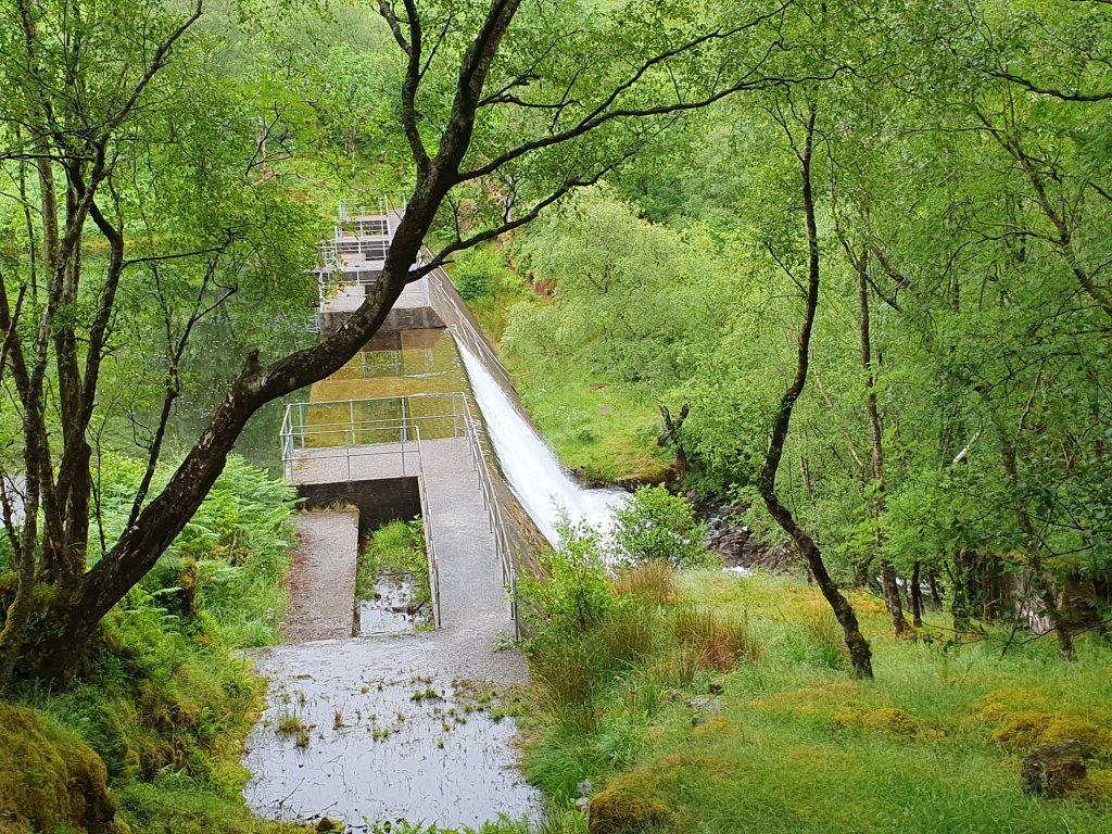 Der Weg schlängelt sich auf und ab inmitten der Highlands, wir passieren das Blackwater Reservoir. Der Stausee ist Teil eines Wasserwegs, der Wasser aus den Bergen und Hügeln der umliegenden Regionen sammelt und es für die Versorgung und Energiegewinnung nutzbar macht.